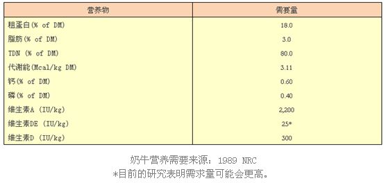 所有的開(kāi)食料必須滿(mǎn)足犢牛的營(yíng)養(yǎng)需要。營(yíng)養(yǎng)需要列表如下: