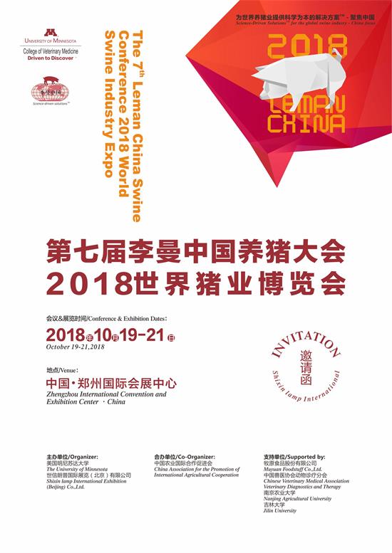 第七屆李曼中國養(yǎng)豬大會將于2018年10月19-21日移師鄭州國際會展中心舉辦,大會將繼續(xù)邀請美國、中國及歐洲國家權(quán)威養(yǎng)豬專家主講,為亞洲養(yǎng)豬業(yè)帶來世界養(yǎng)豬行業(yè)前沿資訊和先進的科學(xué)解決方案,分享生豬養(yǎng)殖與生產(chǎn)管理技術(shù)及運用、豬病預(yù)防,監(jiān)控及診斷、豬營養(yǎng)與飼料生產(chǎn)、養(yǎng)豬育種、養(yǎng)豬市場和經(jīng)濟學(xué)分析等領(lǐng)域的國際最新資訊和研究成果。本屆李曼中國養(yǎng)豬大會參會代表預(yù)計超過6000人。