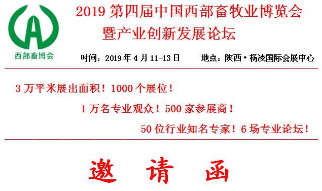 “2019第四屆中國(guó)西部畜牧業(yè)博覽會(huì)暨產(chǎn)業(yè)創(chuàng)新發(fā)展論壇” 將于2019年4月11--13日在陜西·楊凌國(guó)際會(huì)展中心繼續(xù)舉辦。組委會(huì)在秉承上屆成功經(jīng)驗(yàn)的同時(shí),將加大組織和宣傳力度,廣泛邀請(qǐng)和組織國(guó)內(nèi)外知名企業(yè)參展,更全面的展示畜牧業(yè)生產(chǎn)中應(yīng)用的新技術(shù)、新產(chǎn)品、新設(shè)備、新工藝、新模式,加強(qiáng)行業(yè)間的交流合作。創(chuàng)新發(fā)展論壇將邀請(qǐng)國(guó)內(nèi)外知名專家、學(xué)者、名企領(lǐng)導(dǎo)圍繞國(guó)家產(chǎn)業(yè)政策,目前形勢(shì)、發(fā)展趨勢(shì)、存在問(wèn)題、應(yīng)對(duì)策略,進(jìn)行高水平的技術(shù)宣講、互動(dòng)交流。