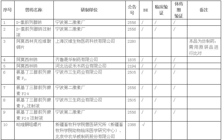 2016年5月1日起監(jiān)測(cè)期滿的所有中獸藥品種實(shí)施比對(duì)試驗(yàn),不需要提供BE、臨床驗(yàn)證及休藥期驗(yàn)證試驗(yàn)報(bào)告,但需要提供藥學(xué)研究資料。