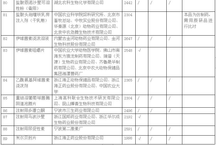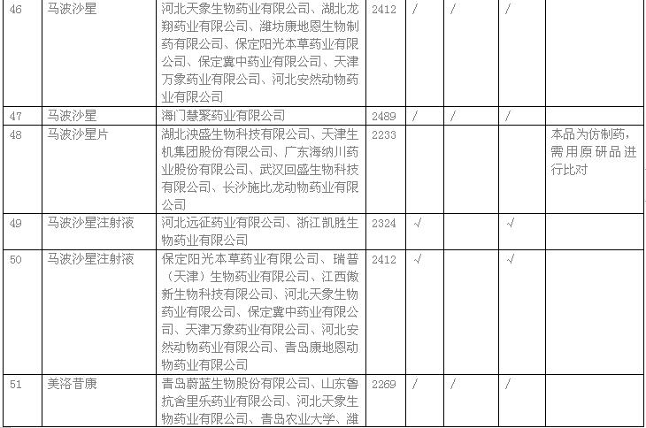 注:1、備注欄中標(biāo)注某公司產(chǎn)品為仿制藥的,采用該公司同品種產(chǎn)品開(kāi)展比對(duì)試驗(yàn)的,試驗(yàn)結(jié)果無(wú)效。