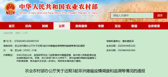 請(qǐng)各省級(jí)畜牧獸醫(yī)主管部門于2020年5月20日前,報(bào)送本省份對(duì)生豬養(yǎng)殖場戶等“全覆蓋”督促檢查和宣傳教育情況。
