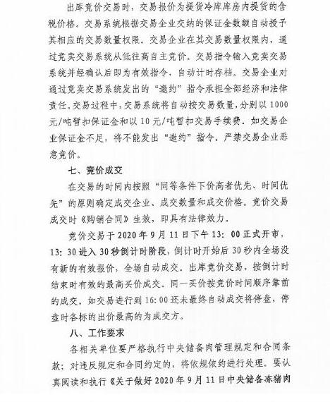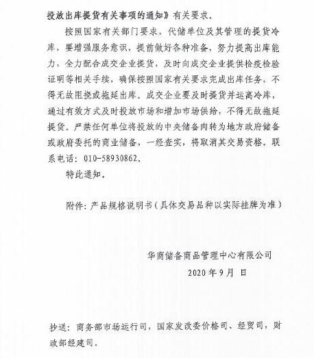 華儲網(wǎng)發(fā)布2020年9月11日中央儲備凍豬肉投放競價交易有關事項的通知,將競價交易1萬噸。