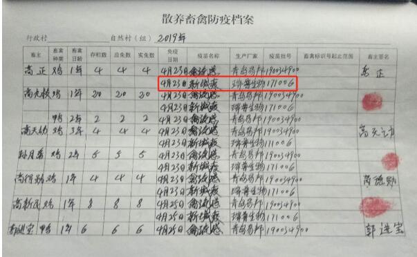 毛先生告訴澎湃新聞,同一種疫病,每年打的疫苗并不完全相同。這兩款疫苗,都是在康國(guó)來(lái)任麥嶺鎮(zhèn)動(dòng)物防疫站負(fù)責(zé)人后發(fā)放的。