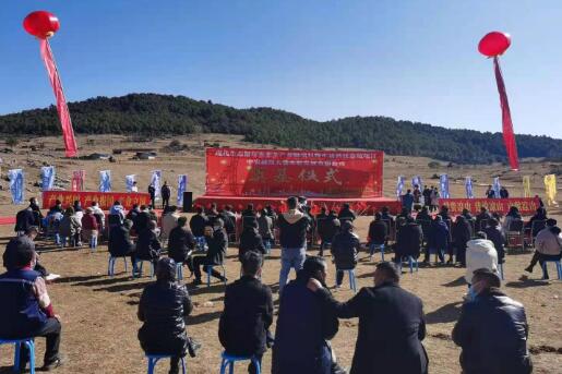 涼山州扶貧開發(fā)協(xié)會(huì)會(huì)長(zhǎng)楊洪清和中農(nóng)大鼎董事長(zhǎng)周兵及鹽源縣有關(guān)部門負(fù)責(zé)人參加了奠基儀式。