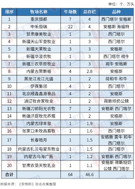 全國肉牛養(yǎng)殖TOP20牧場集團 2020