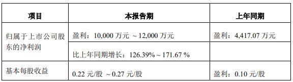 華統(tǒng)股份4月9日披露2021年一季度業(yè)績預(yù)告。公司預(yù)計2021年第一季度盈利10,000萬元-12,000萬元,比上年同期增長126.39%-171.67%。