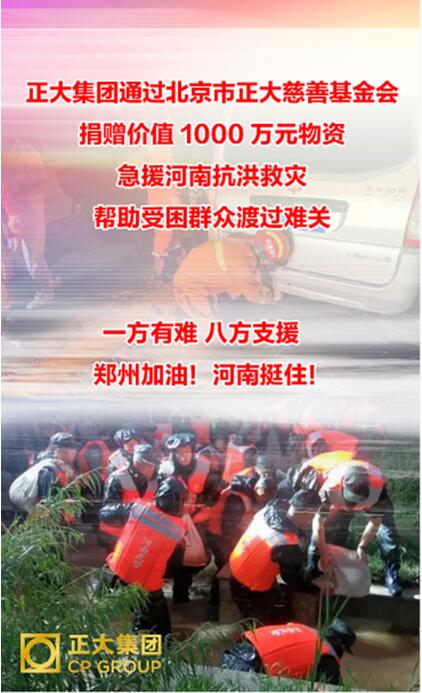 正大慈善基金將分別向鄭州慈善總會(huì)捐贈(zèng)價(jià)值500萬元救災(zāi)物資、通過中國華僑公益基金會(huì)向河南省僑聯(lián)捐贈(zèng)價(jià)值500萬元救災(zāi)物資,馳援河南抗洪救災(zāi)。