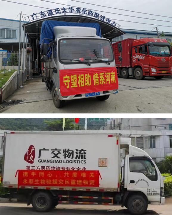 目前廣東永順生物制藥股份有限公司、廣東溫氏大華農生物科技有限公司、佛山市南海東方澳龍制藥有限公司、廣州邁高化學有限公司、肇慶大華農生物藥品有限公司、廣東海納川生物科技股份有限公司、廣東騰駿藥業(yè)股份有限公司、廣州白云山寶神動物保健品有限公司、佛山市正典生物技術有限公司、廣州市匯鑫動物藥業(yè)有限公司、廣東天寶動植物制藥有限公司、廣東妙迪生物藥業(yè)有限公司等12家獸藥生產企業(yè)已將捐贈物資運往災區(qū)。