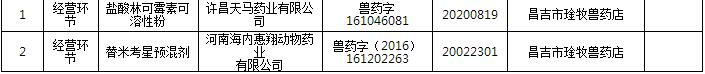(五)惠州叁玖新獸藥開發(fā)有限公司(全年獸藥質量通報產品含量低于80%累計2批次以上)。