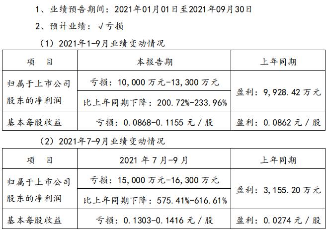 羅牛山10月15日公布2021年度前三季度業(yè)績預告。預計2021年前三季度歸屬于上市公司股東的凈虧損1-1.33億元,由盈轉(zhuǎn)虧。預計第三季度凈虧損15,000萬元-16,300萬元,同比下降575.41%-616.61%。