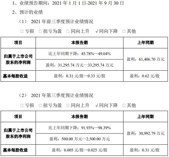 龍大肉食10月15日公布2021年度前三季度業(yè)績(jī)預(yù)告。預(yù)計(jì)2021年前三季度歸屬于上市公司股東的凈利潤(rùn)約3.13-3.33億元,同比下降45.78%-49.04%。預(yù)計(jì)第三季度凈虧損500-2,500萬元,同比下降91.93%-98.39%。