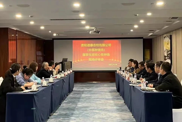 中寨種豬場(chǎng)入選,實(shí)現(xiàn)了貴州省國(guó)家級(jí)生豬核心育種場(chǎng)零的突破,不論是對(duì)促進(jìn)貴州省生豬產(chǎn)業(yè)還是德康集團(tuán)自身發(fā)展,都具有舉足輕重的作用。2021年12月18日,華中農(nóng)業(yè)大學(xué)動(dòng)物科技學(xué)院教授趙書(shū)紅、安徽農(nóng)業(yè)大學(xué)動(dòng)物科技學(xué)院教授、博士生導(dǎo)師殷宗俊、江西省推廣研究員婁佑武等專家學(xué)者到現(xiàn)場(chǎng)展開(kāi)驗(yàn)收工作。貴州省畜禽遺傳資源委員會(huì)主任、省農(nóng)業(yè)農(nóng)村廳副廳長(zhǎng)級(jí)干部向青云、貴州省畜禽遺傳資源委員會(huì)委員、省農(nóng)業(yè)農(nóng)村廳總獸醫(yī)師唐隆強(qiáng)、貴州省農(nóng)業(yè)農(nóng)村廳種業(yè)管理處處長(zhǎng)高捷、畜禽遺傳資源管理站站長(zhǎng)楊忠誠(chéng)等領(lǐng)導(dǎo)蒞臨評(píng)審現(xiàn)場(chǎng)。
