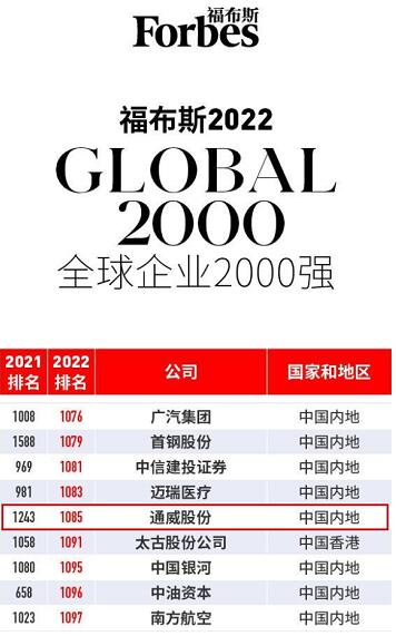 通威榮登福布斯2022全球企業(yè)2000強(qiáng)