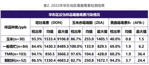 2022年玉米赤霉烯酮在各類樣品中的污染程度比2021年顯著提高。