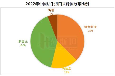 2022年新西蘭是最大進(jìn)口來源國,占40%,進(jìn)口活牛數(shù)量14.07萬頭,同比增長13%,澳大利亞位居第二,占37%,進(jìn)口活牛13.07萬頭,同比增長20%。