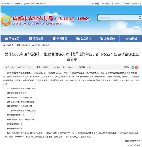 根據(jù)《成都市產(chǎn)業(yè)建圈強(qiáng)鏈人才計劃實施辦法》和《成都市農(nóng)業(yè)農(nóng)村局關(guān)于開展2023年度“成都市產(chǎn)業(yè)建圈強(qiáng)鏈人才計劃”現(xiàn)代種業(yè)、都市農(nóng)業(yè)產(chǎn)業(yè)鏈項目申報工作的通知》,成都市農(nóng)業(yè)農(nóng)村局近日公示了2023年度產(chǎn)業(yè)鏈項目鏈主企業(yè)名單。新希望集團(tuán)成功入選“都市農(nóng)業(yè)產(chǎn)業(yè)鏈鏈主”企業(yè)。